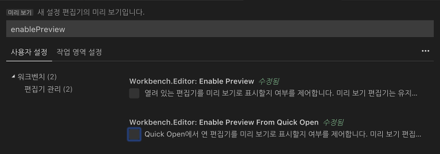 2. 검색에 enablePreview로 검색하고