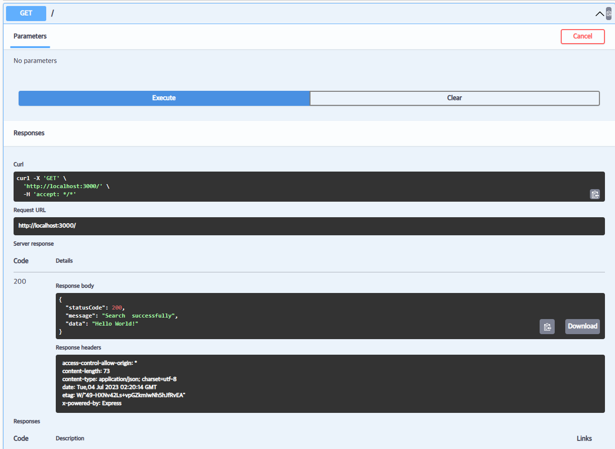 get / 에 요청을 보냈고 200 상태를 받았습니다.