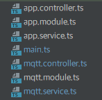 루트 파일에 mqtt.controller, mqtt.module, mqtt.service를 만들어줍니다.