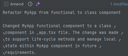 Ctrl + k 를 누르면 commit 컨트롤창이 열리는데요. 반짝이는 아이콘을 클릭하면 영어로 commit 메세지를 작성해줍니다.