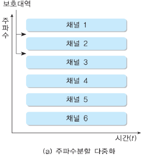 일정한 대역폭을 가진 데이터링크의 대역폭을 나누어서 만든 부채널 상의 신호는 서로 다른 주파수 대역으로 변조(modulation)하여 전송