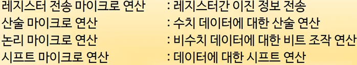 레지스터에서 또다른 레지스터로 보내거나, 안에서 동작하는 것을 마이크로 연산이라고 한다.