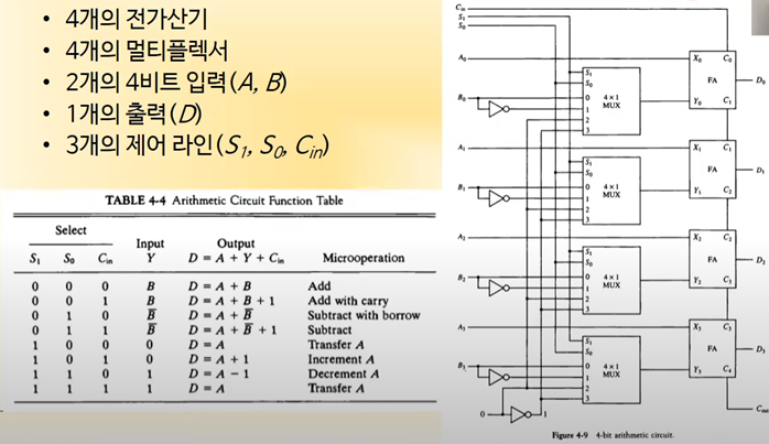 한 비트에 대한 연산을 다루기 때문에 4비트 연산을 만들려면 위 장치가 4개가 있어야 한다.