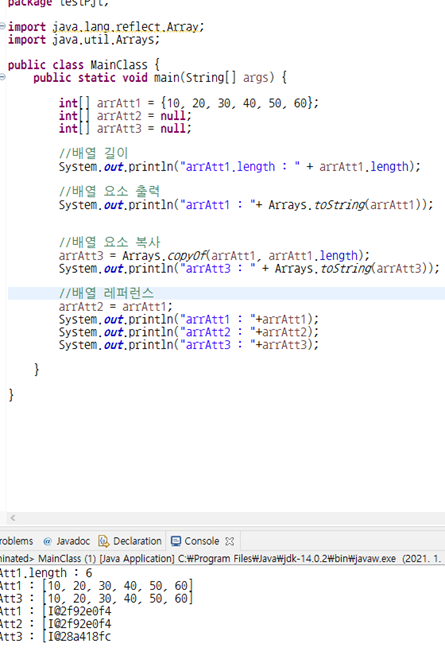 copyOf(배열,배열크기) 하면 배열 주소를 복사하는 것이 아니라 또다른 배열을 만드는 것이다.